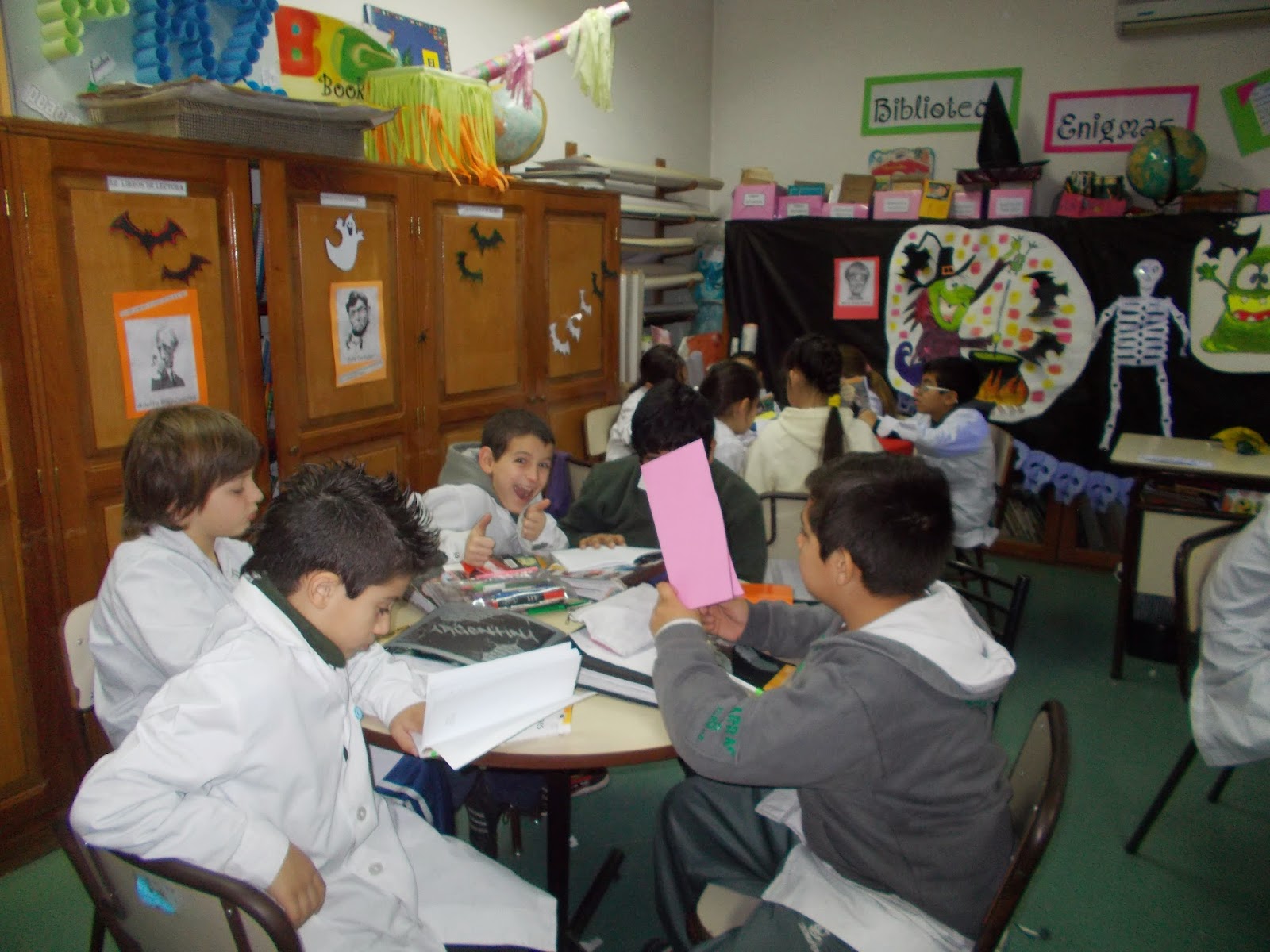 Los de primero realizaron títeres, después de escuchar poesías sobre brujas