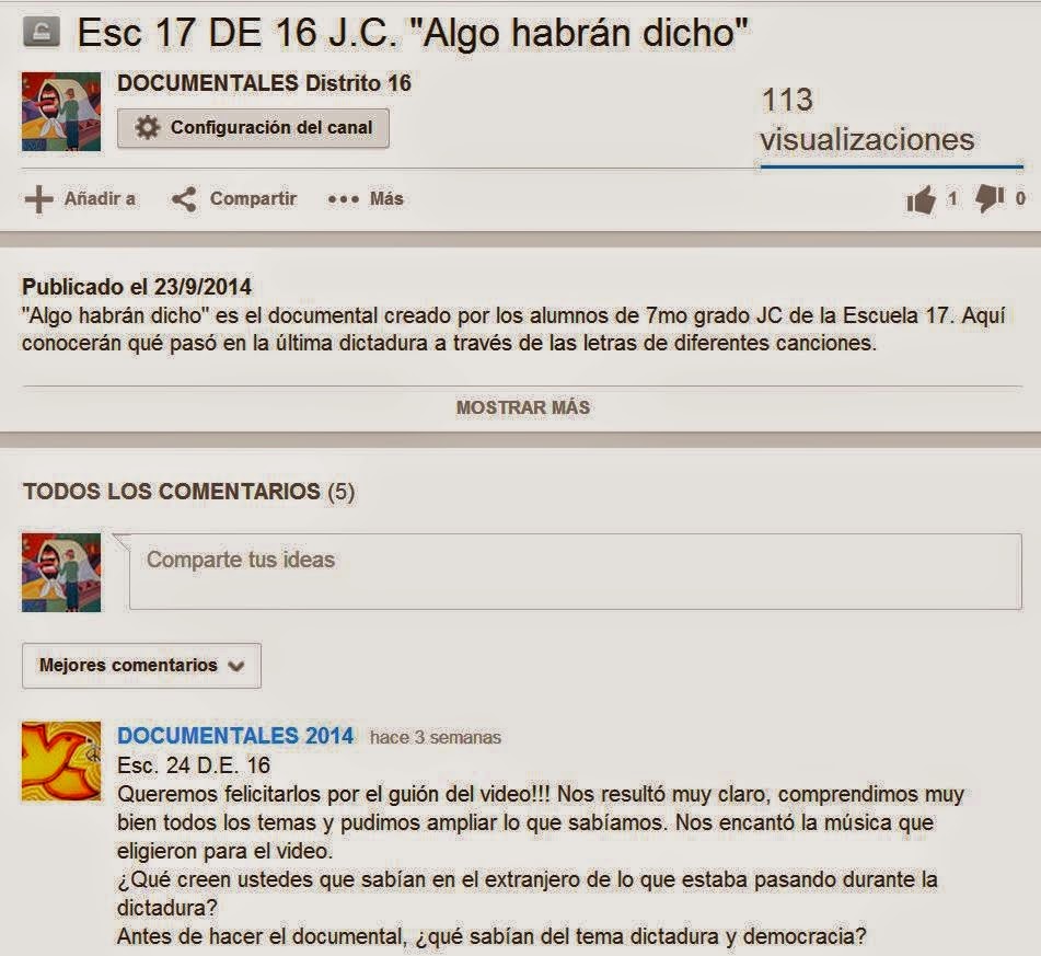 Los alumnos de 7° estudiaron sobre la Última Dictadura Argentina y lo relacionaron con el Mundial '78.El viernes por la mañana hicimos un intercambio con los alumnos del Turno mañana de la Escuela 14