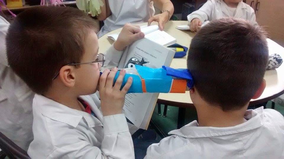 Como producto final después de leer "El inventor de juegos" de Pablo De Santis, los chicos de 7º grado realizaron juegos para sus compañeros de 1º.